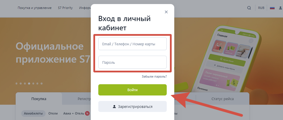 Вход в личный кабинет S7 Airlines