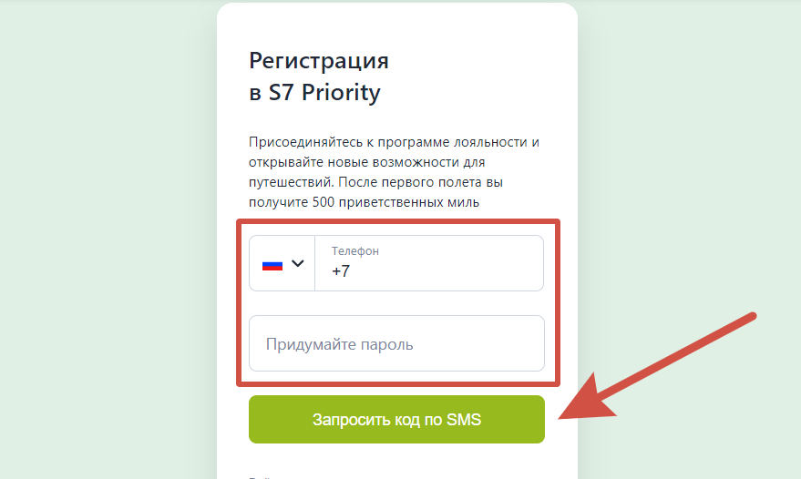 Регистрация личного кабинета в S7 Priority